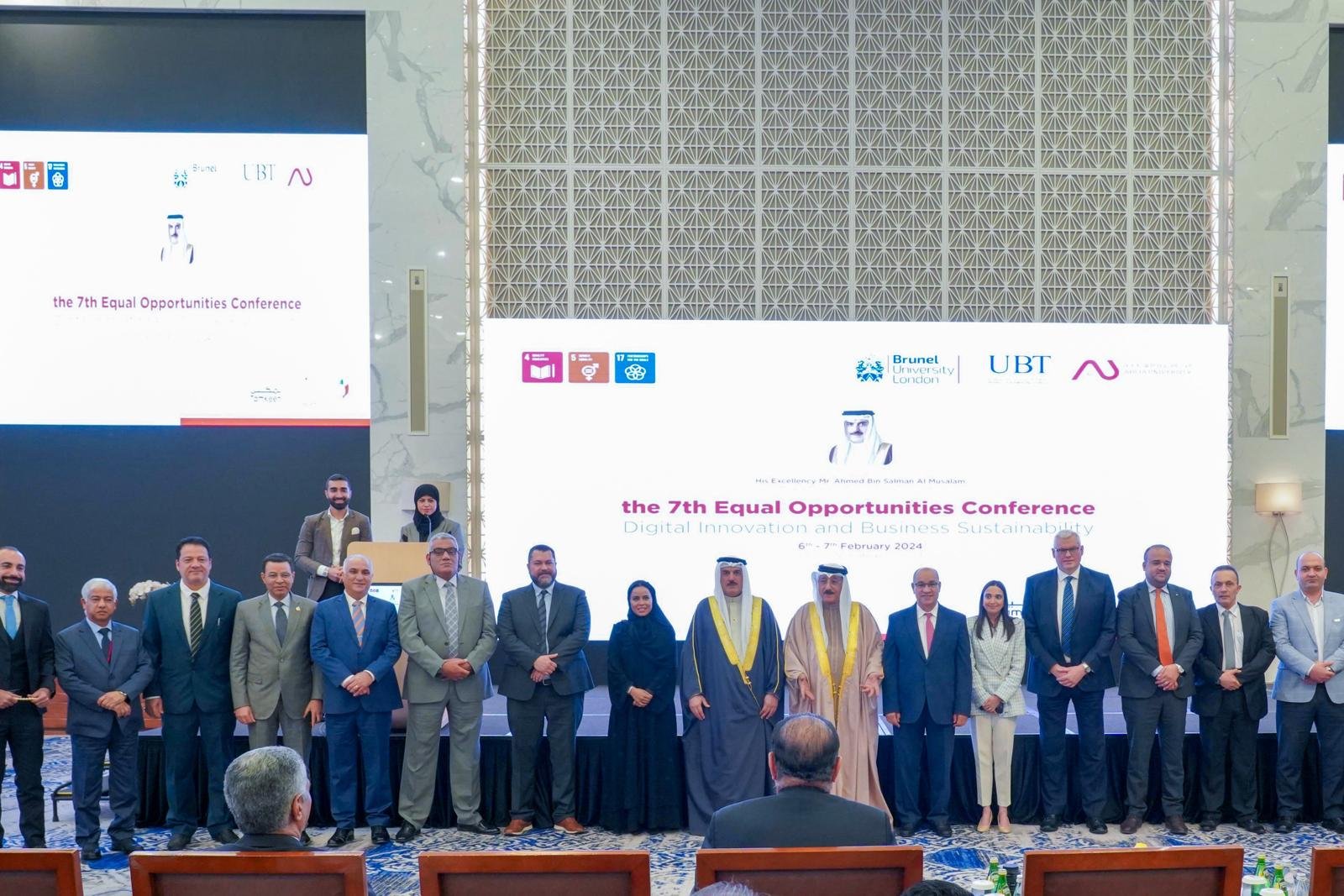 جاء ذلك في كلمتها بالجلسة الافتتاحية لمؤتمر تكافؤ الفرص بين المرأة والرجل الذي تحتضنه مملكة البحرين تحت شعار “القيادة المستدامة، وإدارة الابتكار والتكنولوجيا”، برعاية من رئيس مجلس النواب السيد أحمد بن سلمان المسلم وبتنظيم من الجامعة الأهلية من مملكة البحرين وجامعة الأعمال والتكنولوجيا في جدة وجامعة برونيل البريطانية، وبحضور لفيف واسع من العلماء والأكاديميين والمختصين والمهتمين من مملكة البحرين والمملكة العربية السعودية إلى جانب وفد أكاديمي من المملكة المتحدة.