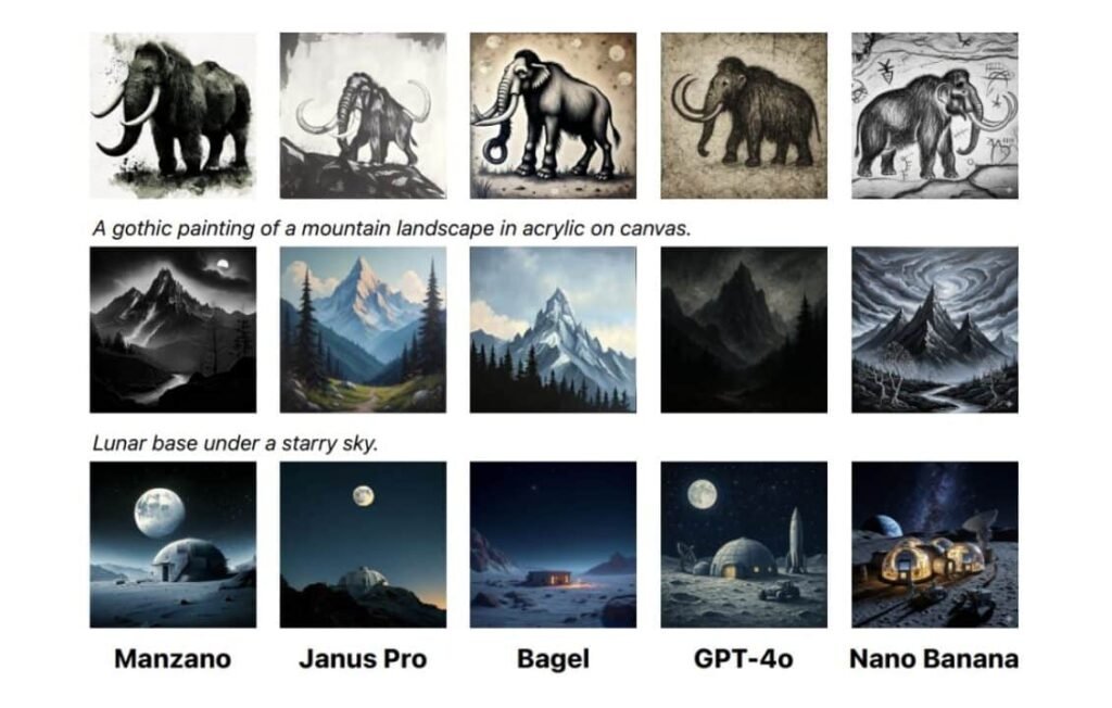 ولم يُطرح النموذج، الذي يعني اسمه “شجرة التفاح” بالإسبانية، بعدُ للاستخدام العام، ولم توفر الشركة عرضًا تجريبيًا له، بل اكتفت بنشر ورقة بحثية تضم عينات صور منخفضة الدقة استُخدمت لمقارنة أدائه بنماذج مفتوحة المصدر مثل Deepseek Janus Pro وأنظمة تجارية مثل GPT-4o و Gemini 2.5 Flash Image Generation المعروف أيضًا باسم “Nano Banana”.