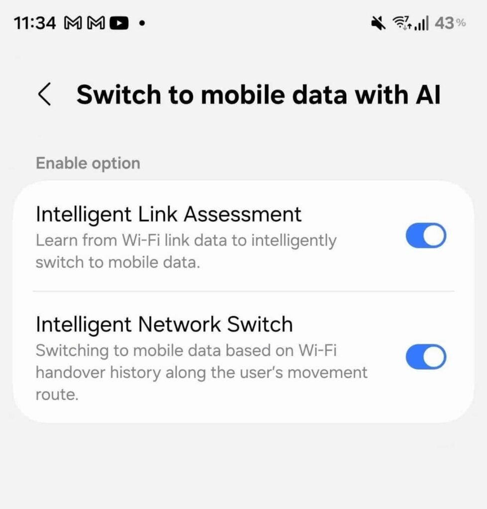 وبحسب ما أورده موقع SammyGuru، فإن سامسونج تعمل على إدخال مجموعة واسعة من خيارات الاتصال ضمن التحديث الجديد، غير أن الميزة الأكثر لفتاً للانتباه تتمثل في قائمة جديدة تحمل اسم “التبديل إلى بيانات الهاتف بالذكاء الاصطناعي”.