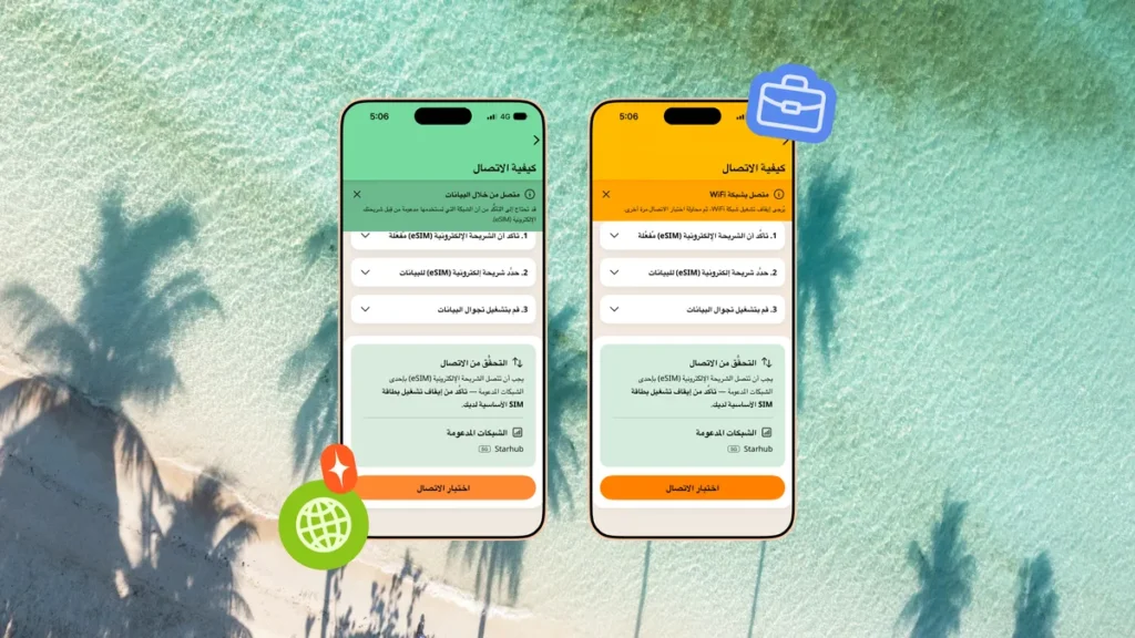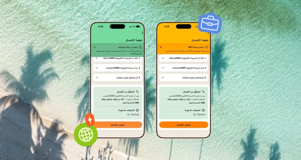 كما تتيح المنصة ميزة “التحقق من الاتصال” التي تعرض حالة الشبكة بنقرة واحدة عبر مؤشر بصري يظهر باللون الأخضر عند الاتصال عبر البيانات و بالبرتقالي عند الاعتماد على الواي فاي. وتشمل واجهة التسوق المُعاد تصميمها إمكانية مقارنة مباشرة بين الباقات، مع عرض فوري لتنبيهات التوافق والأسعار، إلى جانب توسيع خيارات الباقات لتشمل خطط بيانات غير محدودة تمنح المسافرين حرية أكبر أثناء التنقّل.