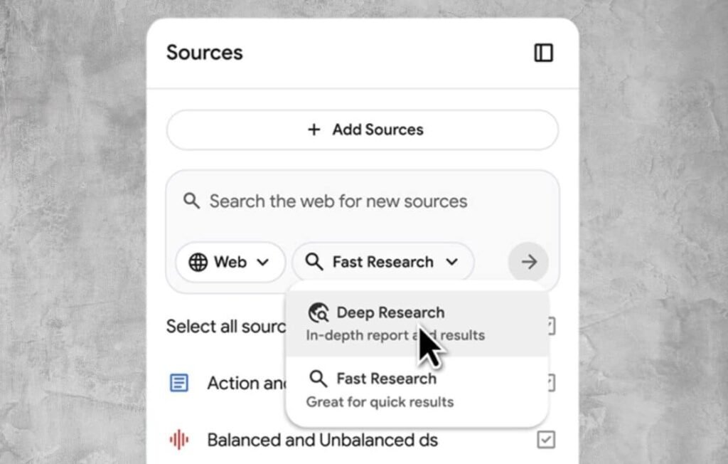 تواصل جوجل تعزيز قدرات أدواتها المدعومة بالذكاء الاصطناعي، إذ أعلنت اليوم إدماج ميزة “البحث العميق Deep Research” في أداة الدراسة والبحث وتسجيل الملاحظات NotebookLM، لتتيح للمستخدمين إجراء أبحاث عميقة وإنشاء تقارير مفصلة بالاعتماد على مصادر متعددة.