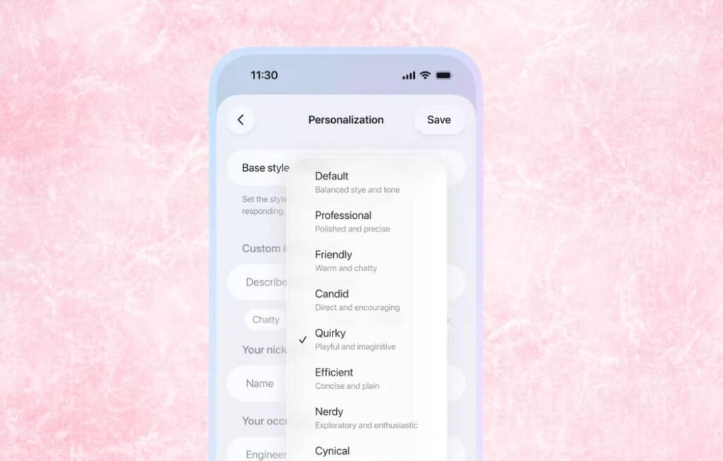من أبرز الإضافات التي تأتي مع نموذج GPT-5.1 خيارات التخصيص الموسّعة، التي تمنح المستخدم قدرة دقيقة على التحكم في أسلوب ChatGPT في الإجابة؛ إذ يأتي النموذج الجديد مع خيارات التخصيص الجديدة التالية: