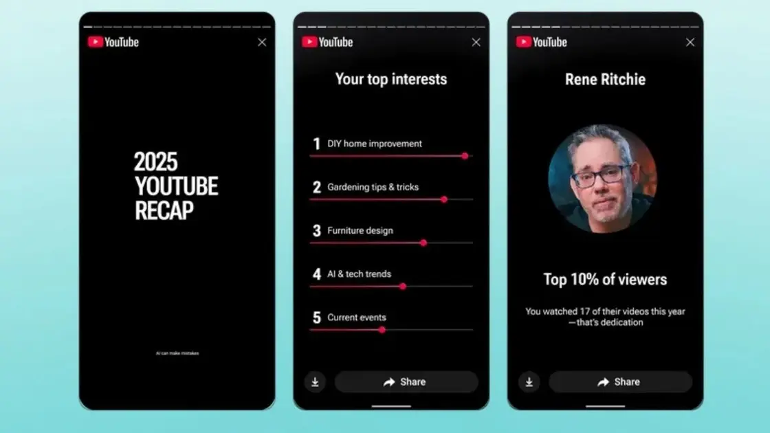 تقول الشركة إن Recap يحول ساعات المشاهدة غير المنظمة إلى سرد ممتع لما شكل ذوق المستخدم خلال العام، سواء كانت سلسلة فيديوهات ضاعت في “التمرير اللانهائي”، أو رحلات الاكتشاف العشوائية، أو القنوات التي أثبتت قدرتها على إبقائك متابعاً.