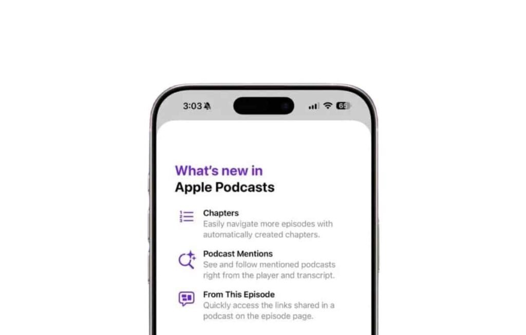 حصل تطبيق البودكاست (Apple Podcasts) على عدة تحسينات، منها: التوليد التلقائي للفصول، فإذا لم يُضف صانع البودكاست فصول الحلقات يدويًا، سيتولى التطبيق إنشاءها تلقائيًا.