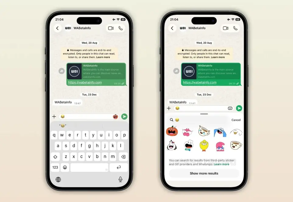 خاصية جديدة من واتساب لـ iOS تقترح الملصقات أثناء كتابة الرسائل