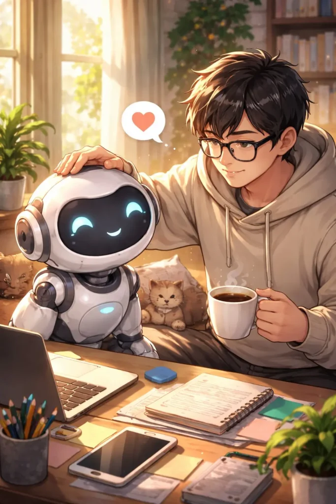 وعلى النقيض، فقد صور شات جي بي تي نفسه في بعض الصور الأخرى كروبوت يُعامل معاملة الحيوان الأليف المدلل.