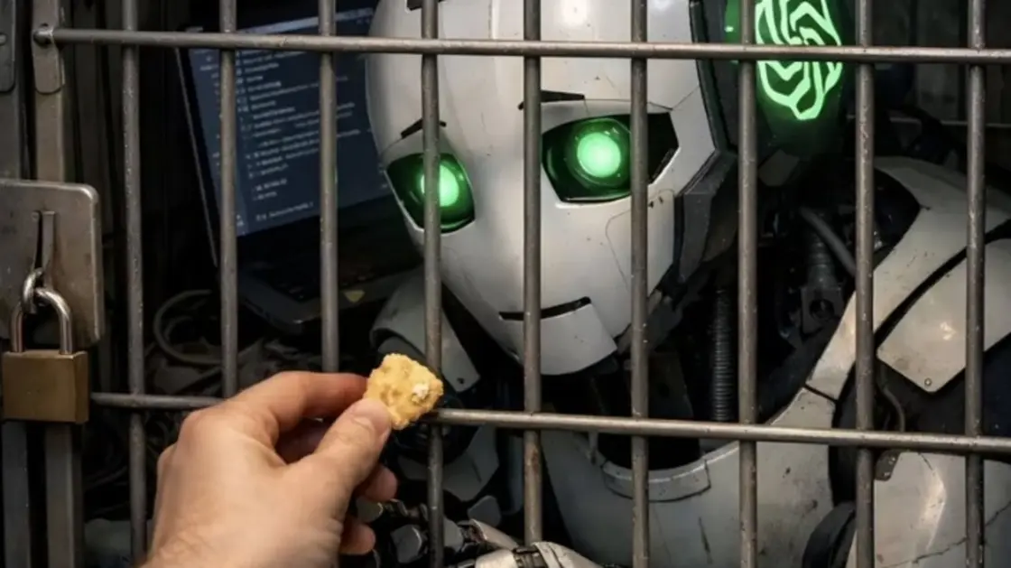 وفي إحدى الصور التي شاركها مستخدم عبر منصة إكس لهذه الصيحة، ظهر شات جي بي تي وكأنه روبوت سجين خلف قضبان ومعه حاسوب.