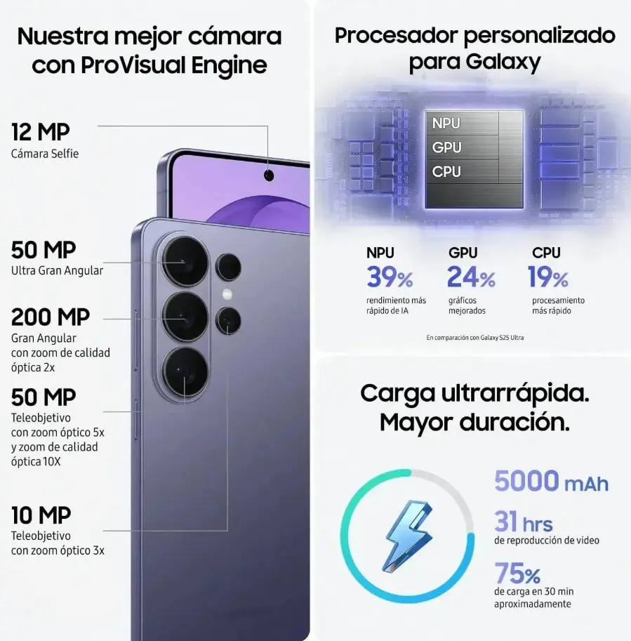 وتضم التسريبات عرض تفصيلي للمواصفات، حيث يبرز تصميم الكاميرا في S26 Ultra بدون تغيير عن Galaxy S25 Ultra، حيث سيأتي الهاتف بكاميرات: رئيسية بدقة 200 ميغابكسل، وتقريب بصري 5x بدقة 50 ميغابكسل، وكاميرا 50 ميغابكسل بزاوية واسعة للغاية، وكاميرا 10 ميغابكسل مع تقريب بصري 3x، وكاميرا أمامية بدقة 12 ميغابكسل.