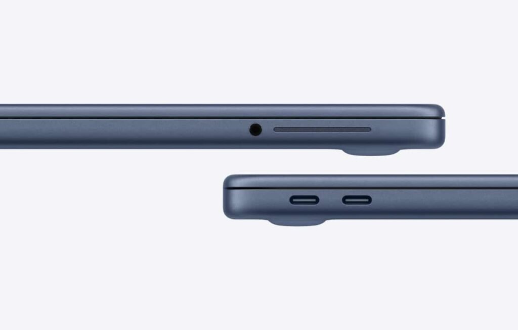 ولا يحتوي الجهاز على منفذ الشحن المغناطيسي MagSafe 3، مما يعني أن أحد منَفذَي USB-C سوف يُستخدم للشحن.