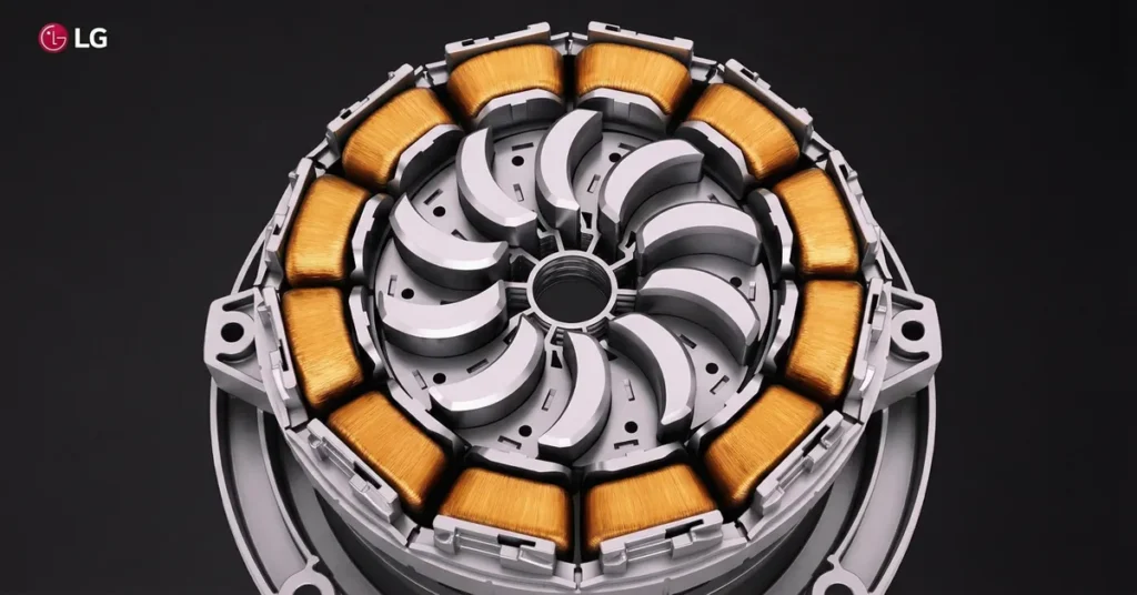 تُطبَّق تقنية LG CurvedSpoke على محركات BLDC المستخدمة في وحدات التكييف الداخلية للمنازل. يعتمد تصميمها على مغناطيس مقوس الشكل يُقلّل حجم المحرك بنسبة 12% تقريباً مع زيادة كثافة الطاقة من خلال الوضع الأمثل للمغناطيس المنحني.